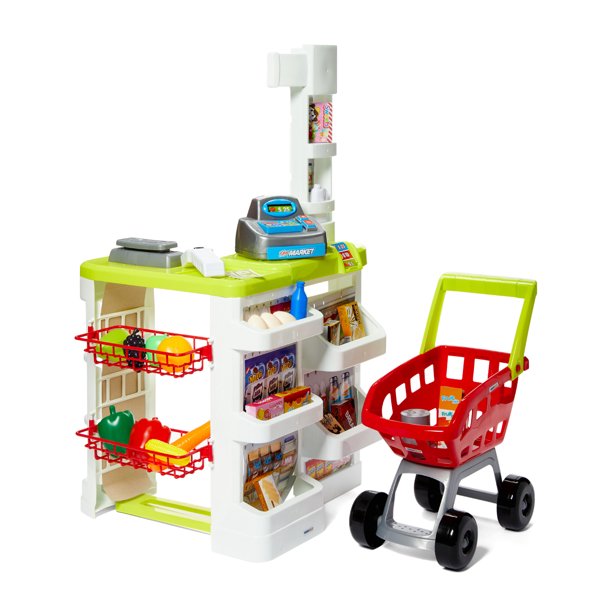 Dash Home Super Market Children S Kid S Pretend Play Toy Food Play Set W Toy Cash Register Working Scanner Shopping Cart Pretend Food And Money Walmart Com